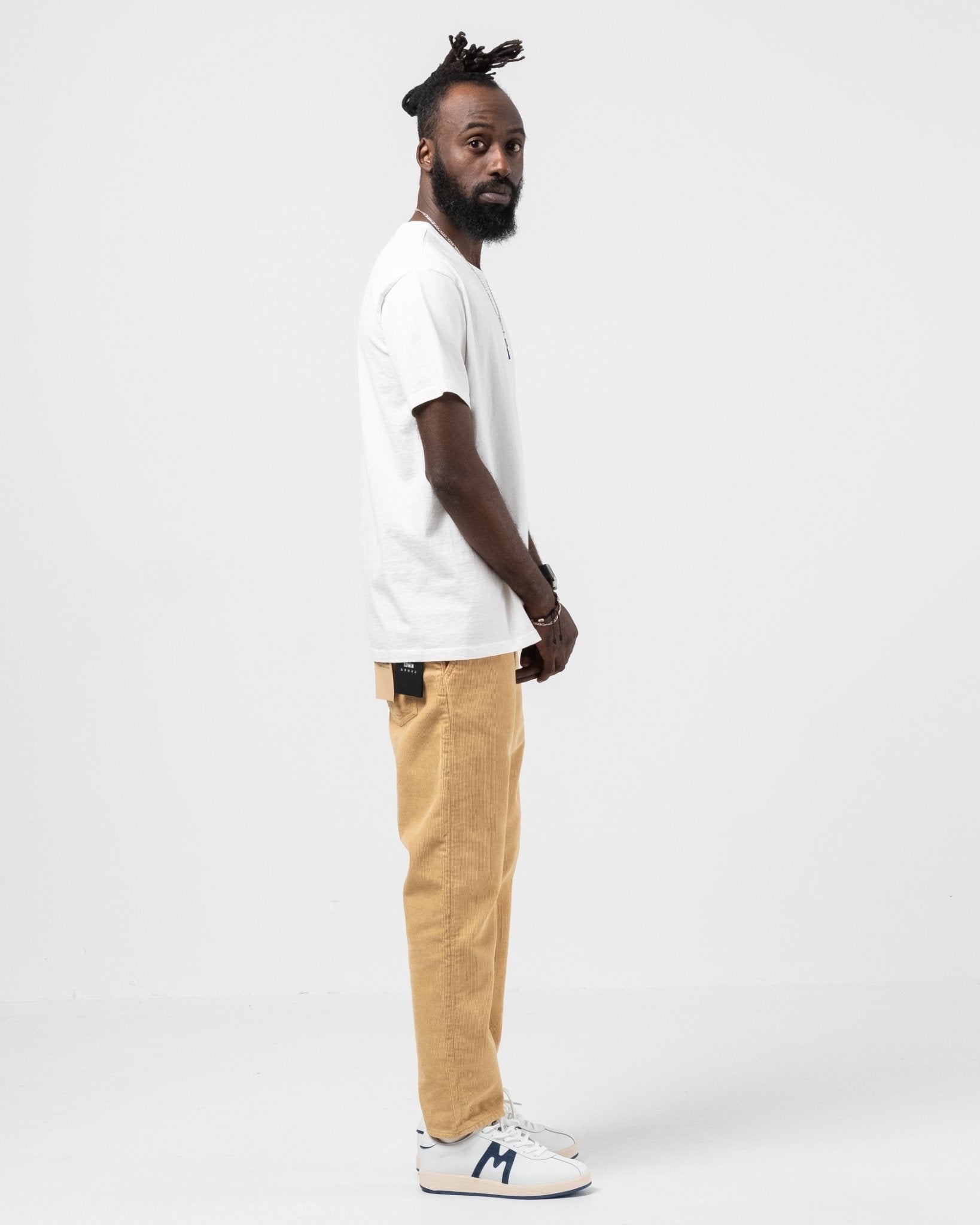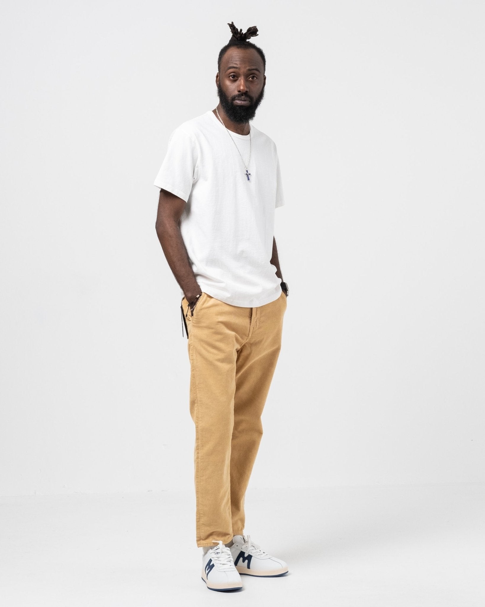 Universe Pant Corduroy Curry di Edwin Europe. Un pantalone con gamba affusolata regolare, corto con vita alta. Realizzato in un delizioso corduroy a 11 coste in 100% cotone. Prodotto in Tunisia.