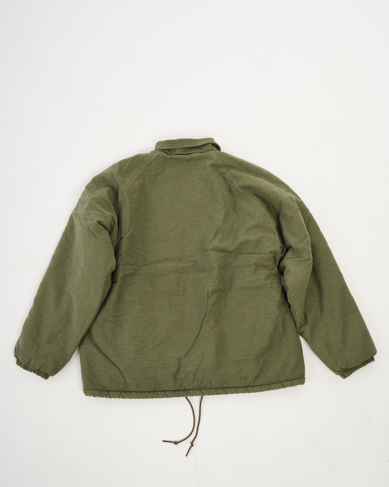 orSlow aggiunge un tocco accogliente al classico giubbotto da allenatore. Realizzato in Giappone in cotone resistente, questa versione è lavata in capo per un aspetto vissuto e abbinata a un caldo rivestimento in pile. Il tono verde oliva scuro aggiunge un bordo utilitario, mentre bottoni a pressione, orlo con coulisse e colletto semplice mantengono il design fedele alle sue radici sportive. Leggero da indossare ma costruito per i giorni più freddi, è il tipo di giacca che bilancia facilità, comfort e carattere nel vero stile orSlow.