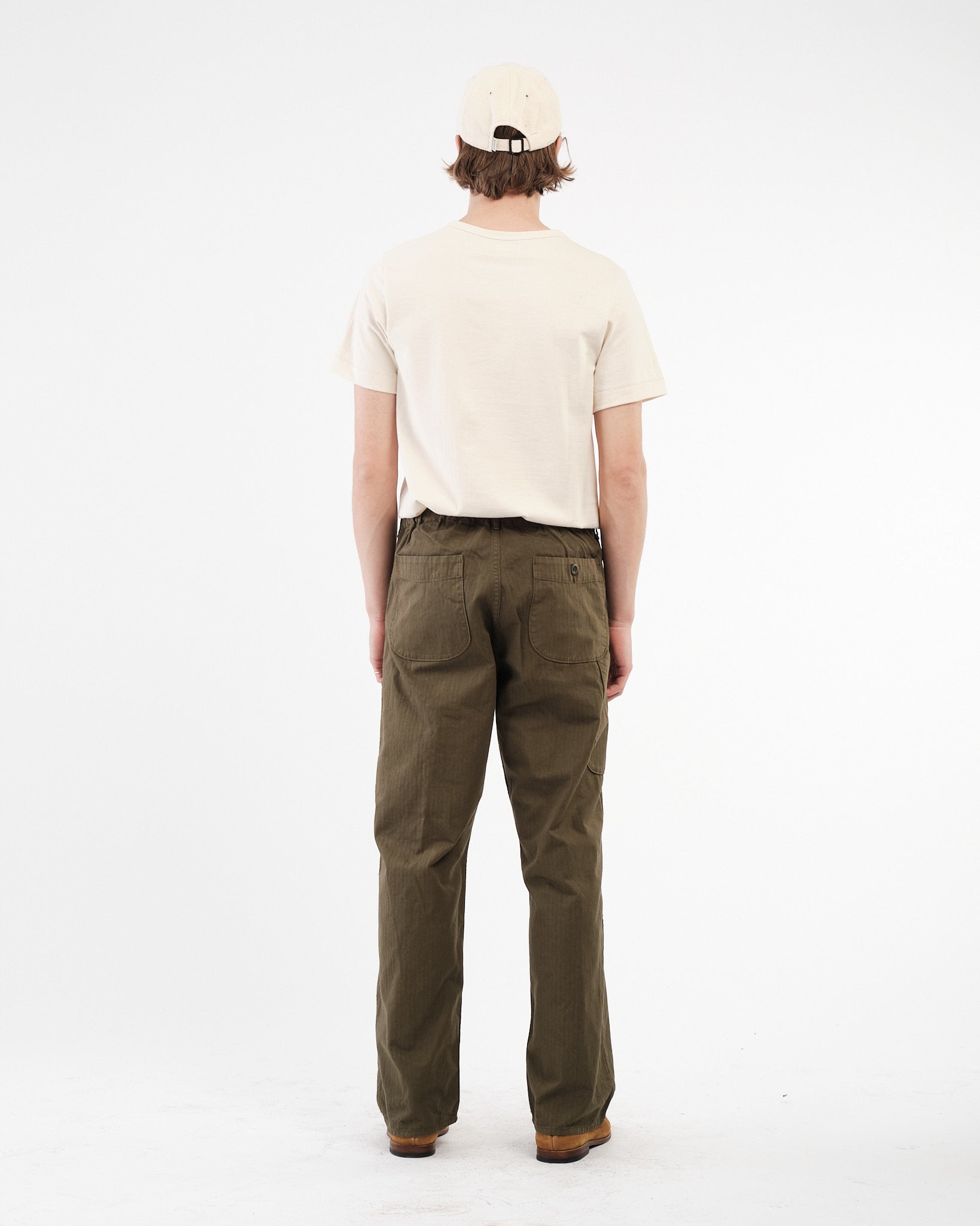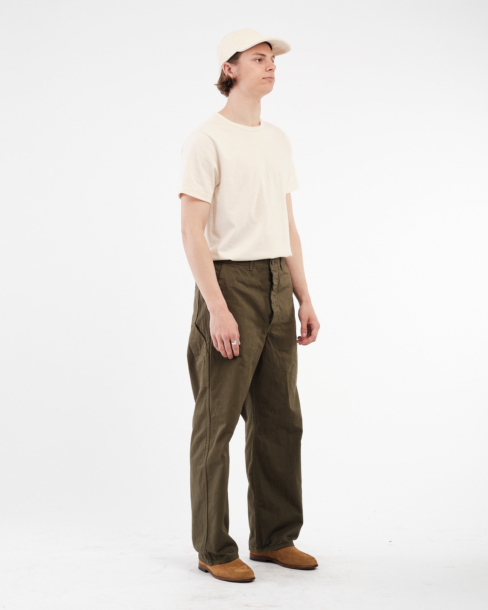 I pantaloni da lavoro francesi OrSlow Wide Fit in Verde Militare rendono omaggio all'abbigliamento da lavoro francese con un design a gamba larga rilassato che combina comfort e praticità in modo equilibrato. Realizzati in Giappone in materiale di cotone con vita alta e una silhouette di gamba ampia per una mobilità migliorata. La versatilità della tonalità verde militare aggiunge un tocco ispirato allo stile militare rendendoli perfetti, per contesti casual o leggermente formali. Questi pantaloni sono realizzati con tasche posteriori che non sono solo eleganti ma anche pratiche. Una testimonianza dell'impegno di orSlow, per l'artigianalità di qualità.