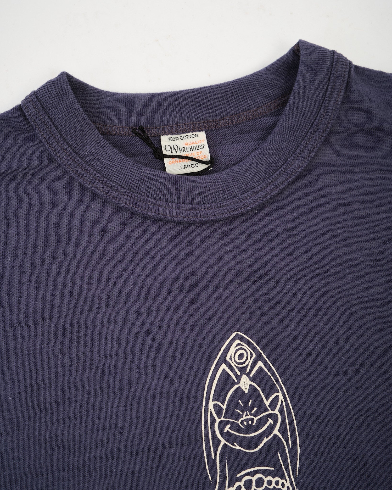 La maglietta WAREHOUSE Lot 4601 in color Melanzana è parte di una collaborazione speciale con il rinomato artista giapponese Yusuke Hanai. Realizzata in cotone slubby di prima qualità, essa mette in mostra l'arte distintiva di Hanai "LE COSE COME DOVREBBERO ESSERE", mescolando estetiche vintage con stile contemporaneo. Il tessuto morbido e testurizzato e la stampa di alta qualità rendono questo capo un pezzo di spicco per qualsiasi guardaroba, combinando arte e comfort quotidiano.