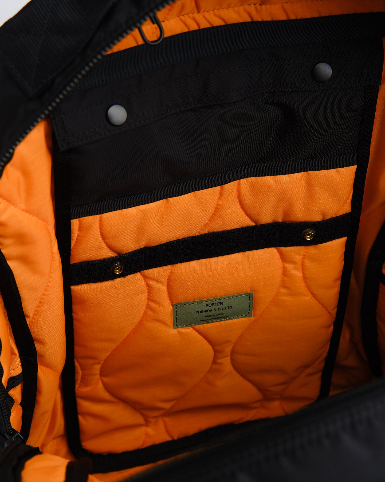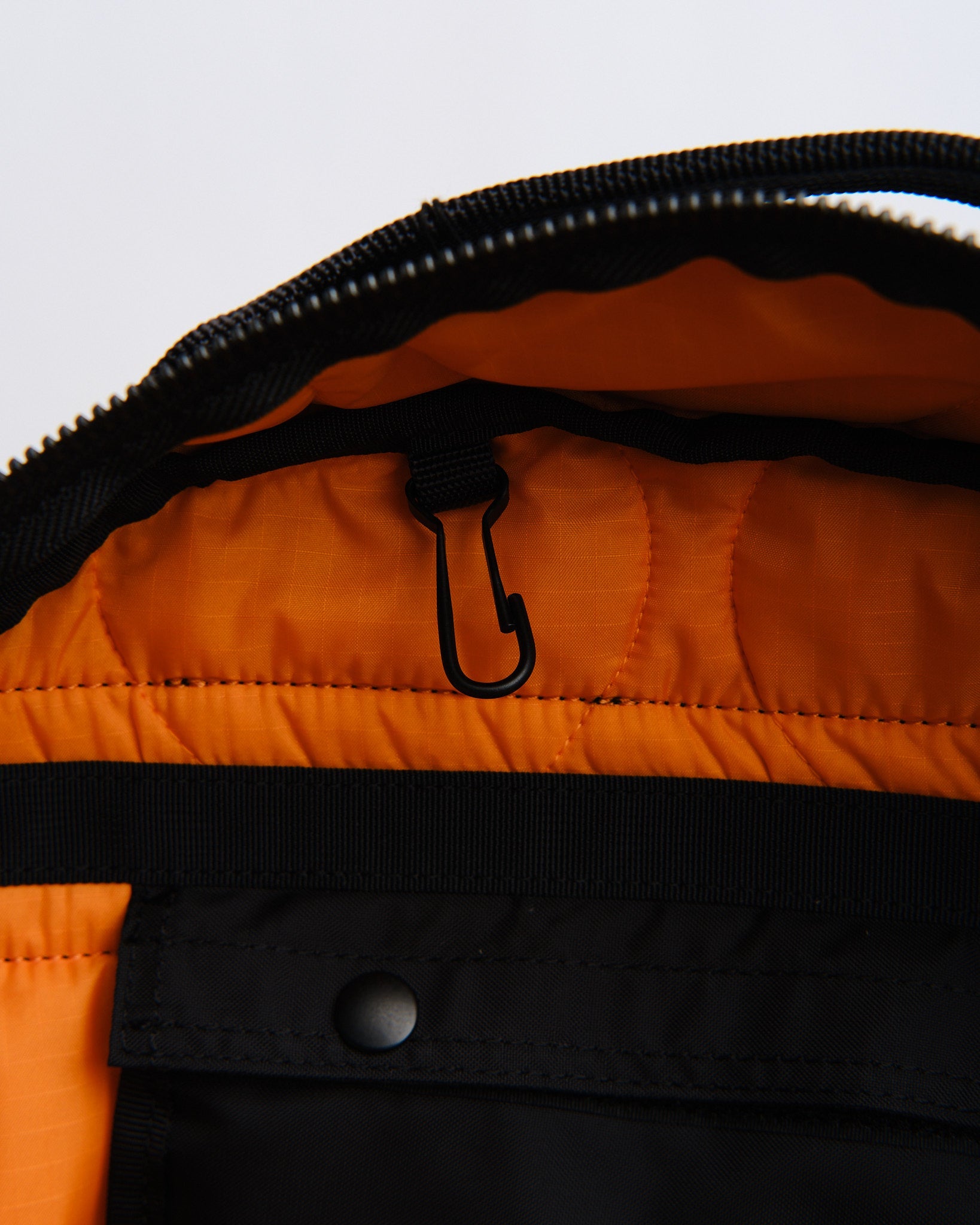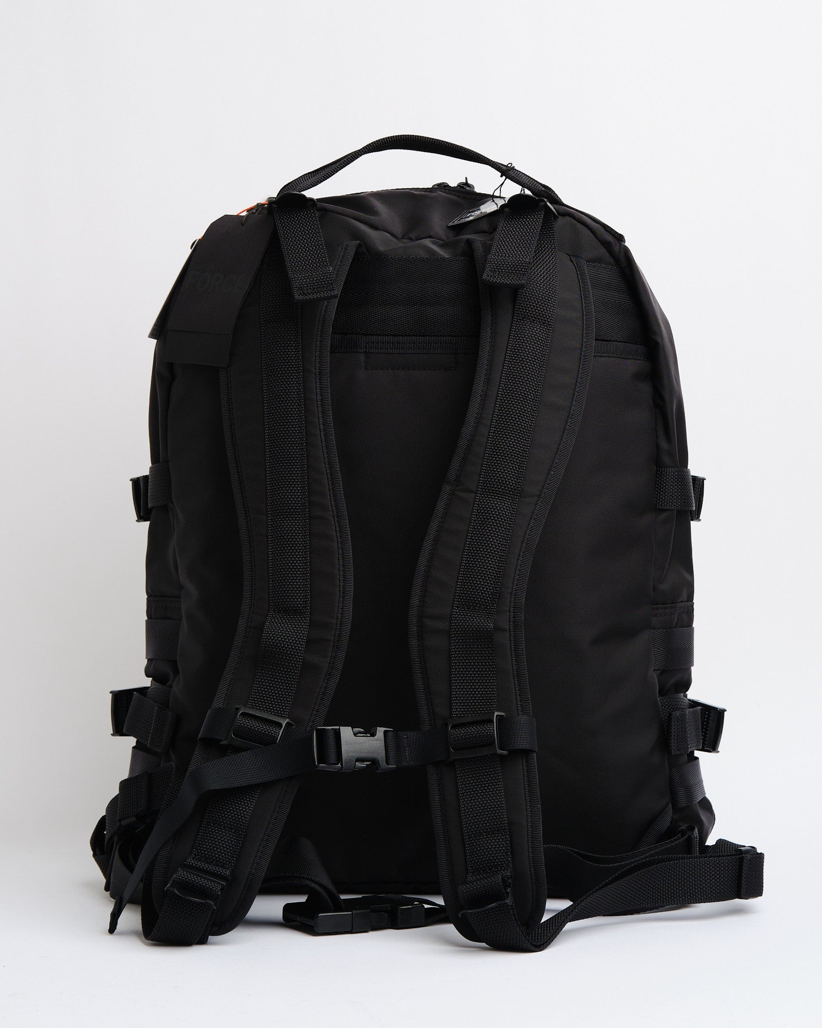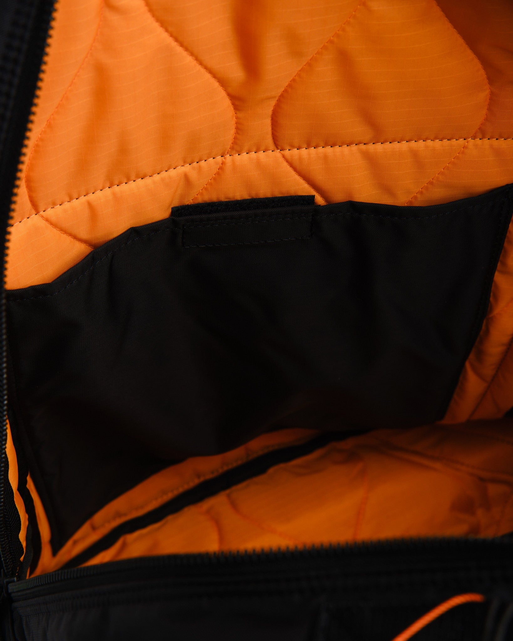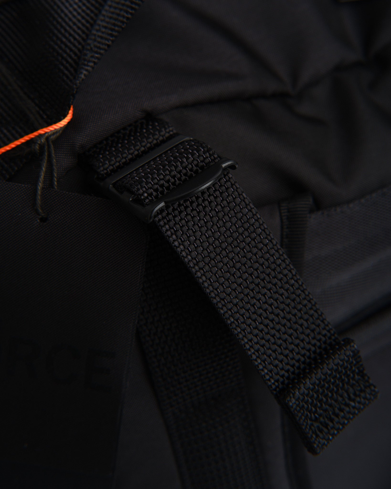 Il materiale esterno del Force Daypack è realizzato in un tessuto industriale ad alta durabilità, tessuto con filo forte di nylon 6 da 210 denari, originariamente utilizzato nelle barche di gomma e progettato per essere resistente alla tintura. Questo materiale robusto assicura che la borsa sia sia resistente che versatile. Per aggiungere autenticità, l'interno della borsa presenta l'arancione di emergenza, ispirato alla fodera delle giacche militari, e nylon ripstop trapuntato per durabilità.