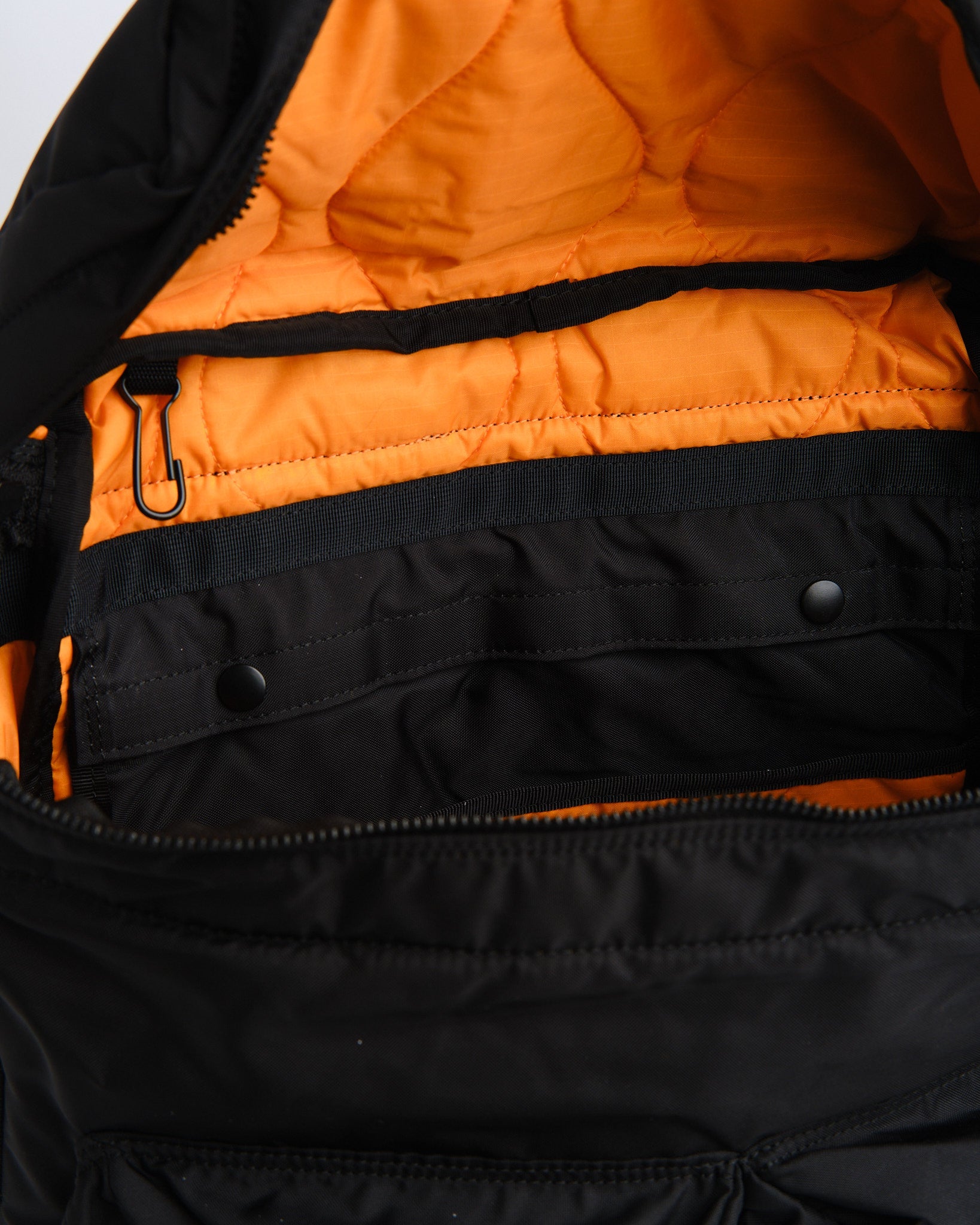 Scopri lo zaino PORTER YOSHIDA PORTER FORCE DAYPACK in Nero, una fusione di stile moderno e precisione militare. Progettato e realizzato in Giappone, questo zaino trae ispirazione dalle variazioni di colore presenti nell'equipaggiamento militare. È costruito utilizzando tessuto Nylon Ox con una copertura in acrilico mentre il suo interno è foderato con nylon ripstop trapuntato in una vivace tonalità arancione d'emergenza. Questa combinazione non solo garantisce longevità ma aggiunge anche un tocco unico al suo appeal estetico. Lo zaino vanta un compartimento principale di dimensioni adeguate che ospita facilmente oggetti di formato B4 insieme a diverse tasche esterne con zip, una tasca con Velcro e tasche interne organizzative. Una di queste può essere staccata per una maggiore comodità. Con dimensioni di W 295mm x H 410mm x D 130mm e un peso di 735g è perfettamente adatto all'uso quotidiano, senza compromettere lo stile o la funzionalità. Inoltre, la sua capienza di 19L garantisce spazio per conservare tutti i tuoi oggetti essenziali.