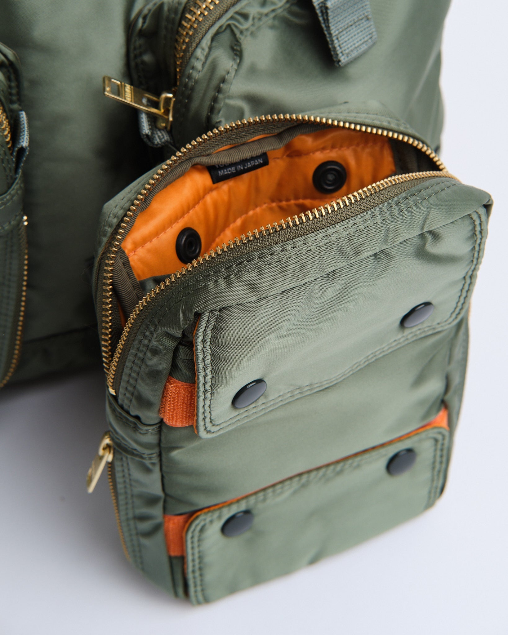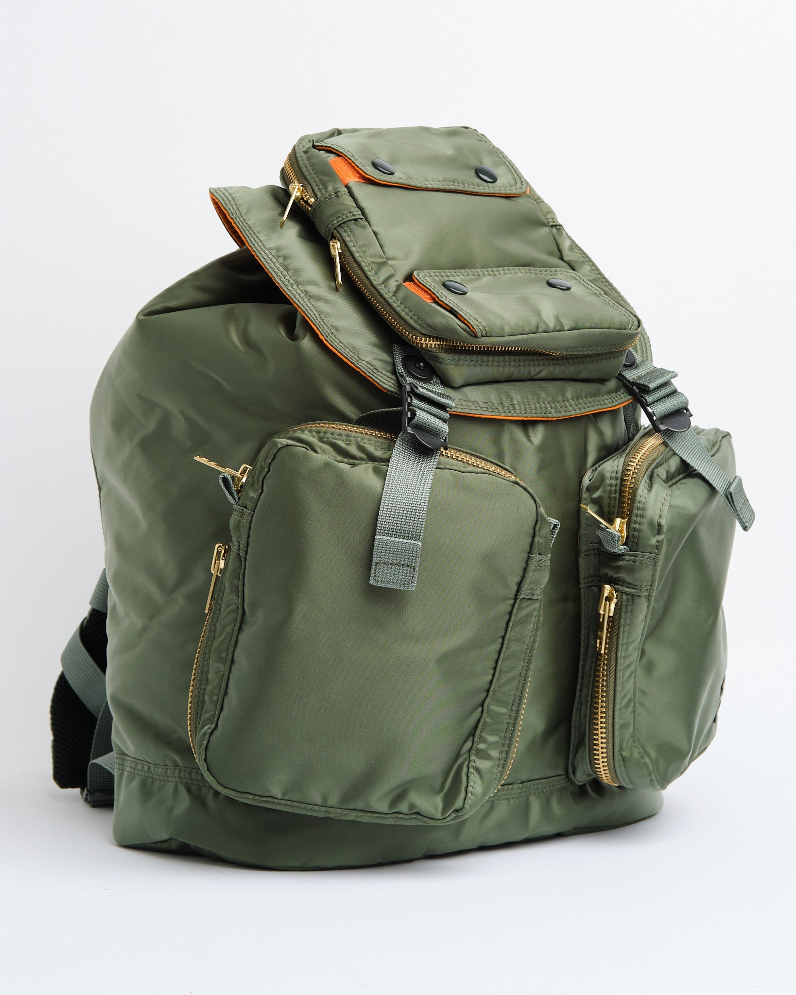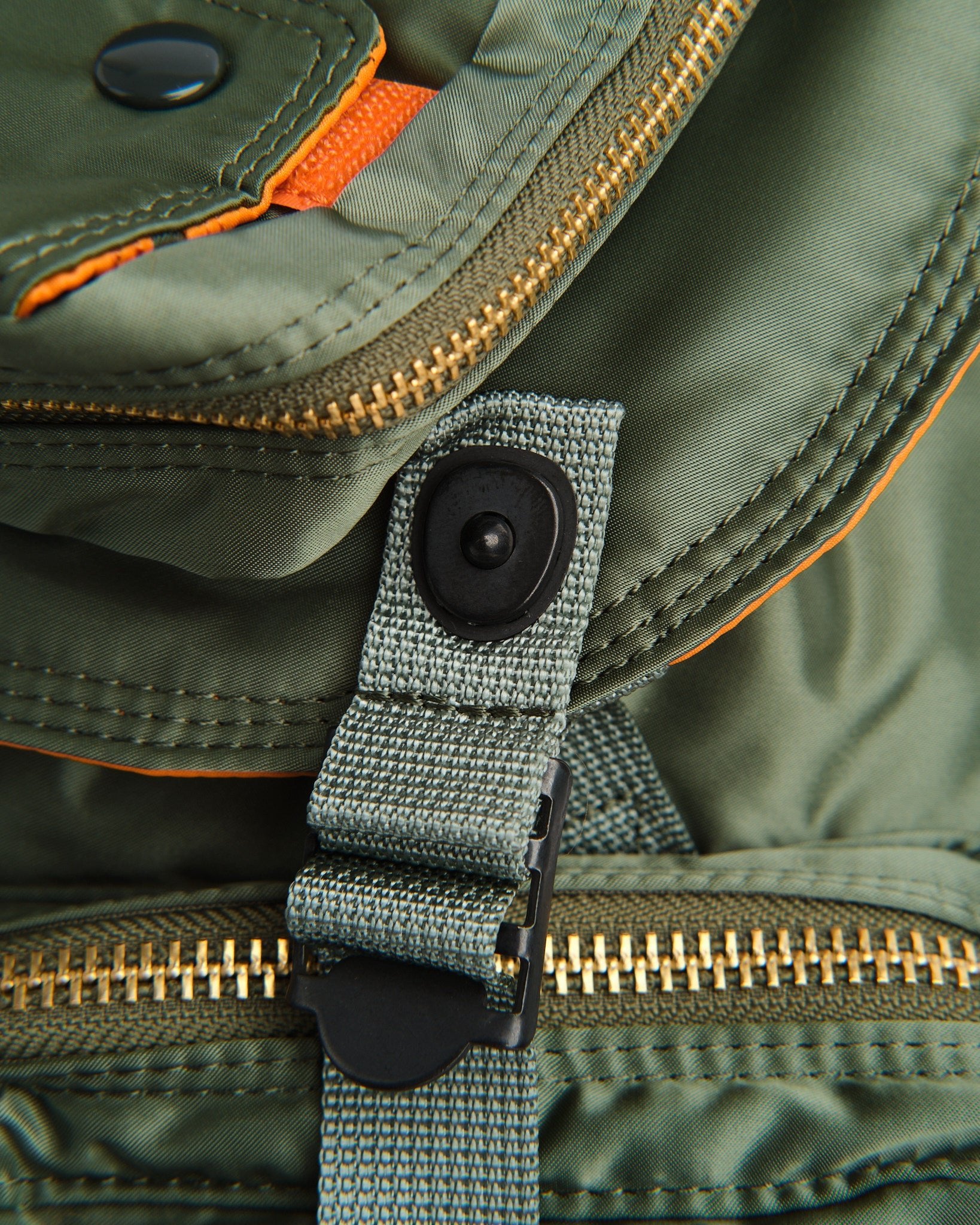 Il Ruck Sack Porter By Yoshida Tanker in verde salvia è un accessorio indispensabile per chiunque apprezzi lo stile, la funzionalità e la qualità. Realizzato in Giappone come parte della iconica serie "TANKER", questo zaino presenta un tessuto originale ispirato alla giacca da volo "MA-1" della US Air Force.